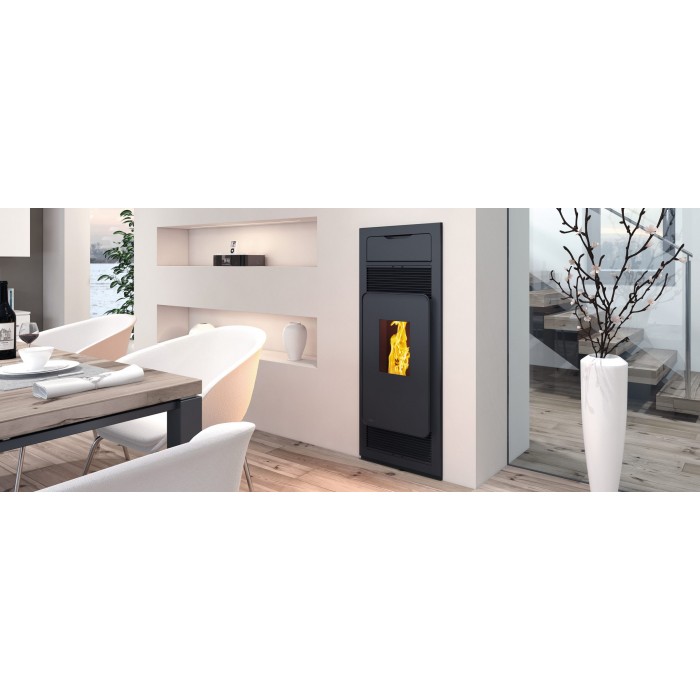 RIKA REVIVO 140 est un insert de chauffe pour anciens poêles-cheminées et poêles de masse doté d'une technologie à pellets ultramoderne. En sus de l'allumage confortable par pression sur un bouton et d'une commande mobile via smartphone, l'insert de chauffe convainc par sa capacité de chauffage constante et son efficacité supérieure à 90 %. L'insert REVIVO 140 offre de plus un grand réservoir de pellets d'une contenance d'env. 50 kg, correspondant à 76 litres.